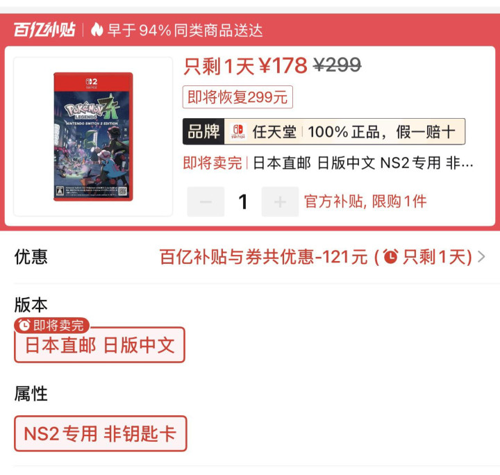 | 各位玩家周六好,感谢各位再次来到ACG吐槽君feichenpan的【任天堂NS2/NS实体游戏好价推荐】频道,这期给大家带来的是2026年4月11日某多平台上低价的NS2/NS全新游戏,其中NS2中文游戏《宝可梦传说ZA》178元全新包邮(需要75折券),本作终于降到两百以下了,感兴趣的NS2新玩家可以购入。