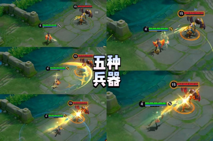 技能机制 蚩姹的特色就是自身有五把兵器,分别是殳、矛、戈、戟及弓,蚩姹普攻时会依次使用这些兵器,以此提升攻速、吸血和攻击距离,可通过英雄血条下的进度条判断此时处于何种兵器状态。
