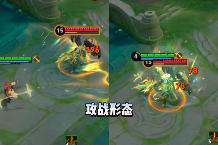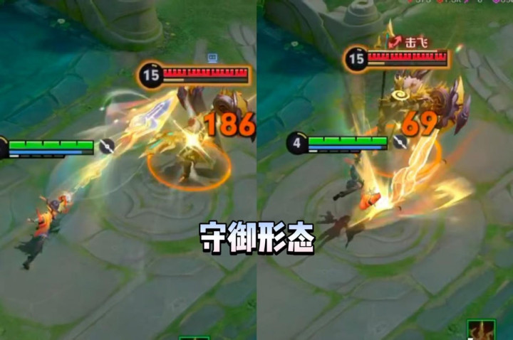 一技能,守御形态可击退敌人并回复生命值,类似于项羽一技能;攻战形态会冲刺一段距离,击飞并伤害敌人,类似于孙策一技能;超杀形态,击退敌人若触碰墙体则束缚敌人,类似老夫子大招。 二技能,守御形态会向前戳刺,击退敌人并回复生命值;攻战形态横扫前方敌人,回复血量;超杀形态召唤箭雨,附带真实伤害和斩杀效果。