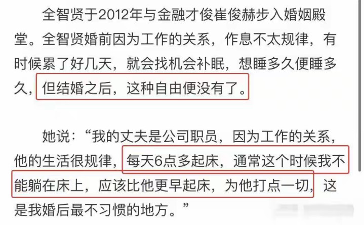 每天早上六点,全智贤必须做好早餐,然后陪同老公吃饭,吃完饭陪婆婆去打高尔夫,还得问候自己的豪门奶奶。