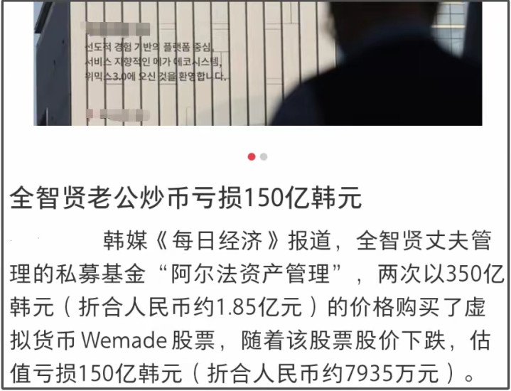 媒体再爆惊天大瓜,女神的老公闯祸了! 韩国《每日经济》披露,全智贤的老公投资的私募资金,亏损了150亿韩元,接近8千万人民币。