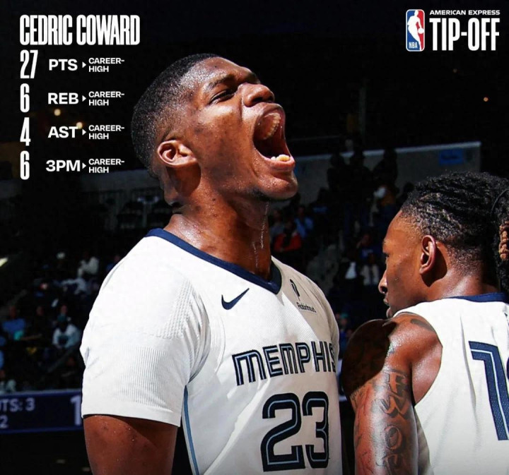 | 本赛季至今,灰熊新秀&1米96锋卫摇摆人考沃德首战投篮5中5,14分3板1助2断1帽;次战投篮9中5(三分5中2),16分2板2助2断;第三战投篮13中9(三分6中6),27分6板4助1断。