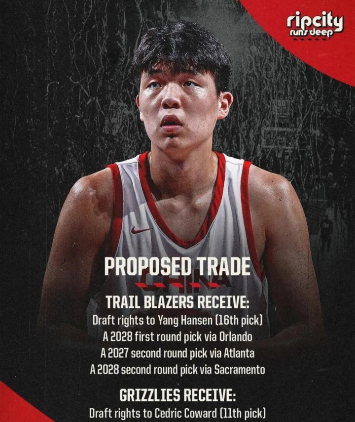 今年选秀大会,灰熊为了从开拓者手里得到选中考沃德的11号签,不惜送出16号签(杨瀚森),一个未来首轮签以及两个次轮签。