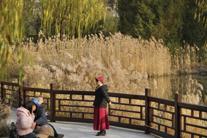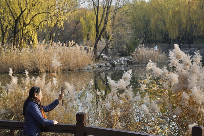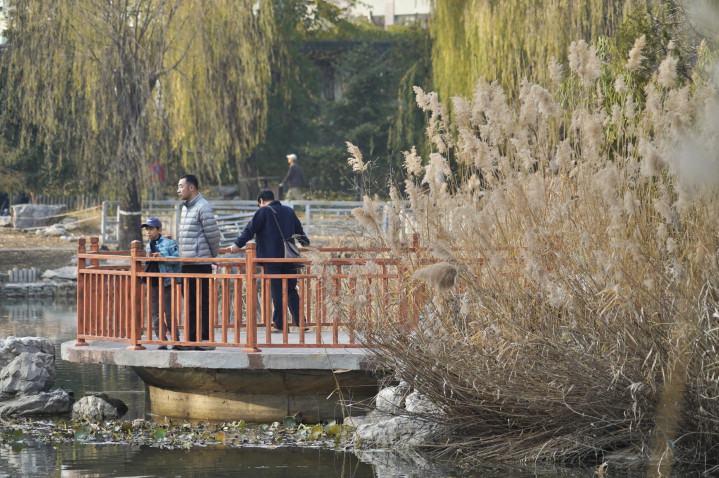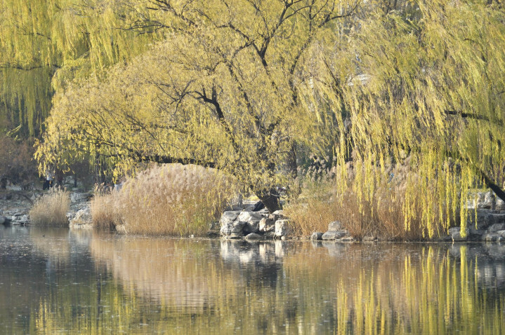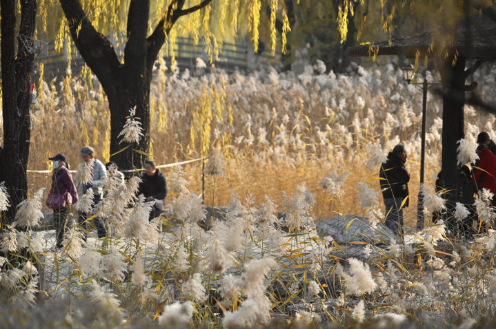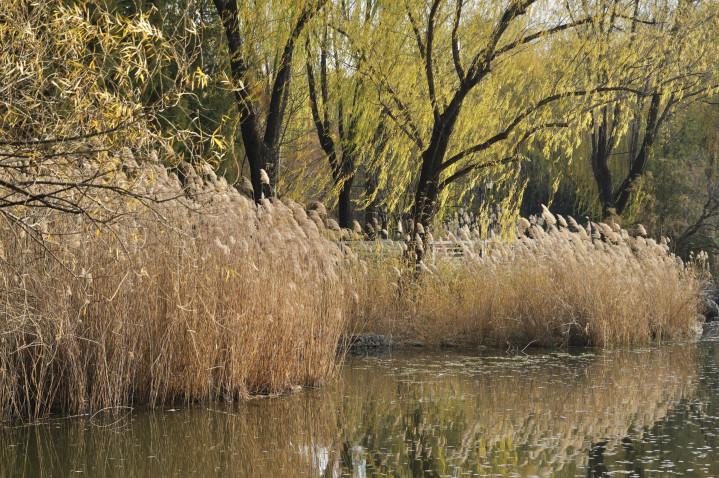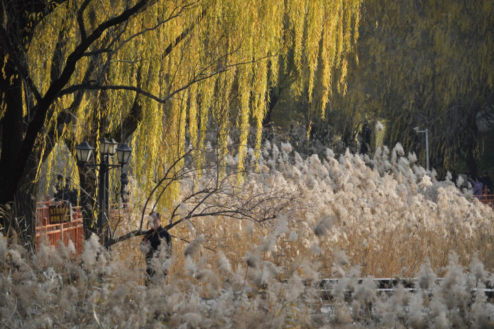 小雪节气已过,柳荫公园堤岸上的垂柳已黄,银杏、元宝枫也已落尽。湖畔生长着大片的芦苇,芦花盛放,在阳光下,泛着银白色的光泽。随风摇曳,姿态婀娜,呈现别样浪漫。